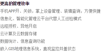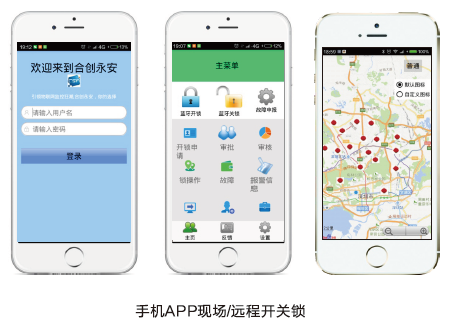 永安智能井盖密码锁为我公司专利产品。产品内置蓝牙4.0通信模块,通过手机APP与锁体建立通讯连接,实现井盖密码锁更智能、更安全的手机开、关锁方式。通过云平台和手机APP平台可实时查询井盖状态,对非法开启、异动等异常状态及时报警,采集并记录井盖工作状态数据。锁体采用高强度、耐腐蚀航天材料,高精度加工,有极高的防水、防潮、防尘、防震能力,同时配有RFID身份识别芯片,每个锁均有独立身份密码,有效防止井盖非法开启、保护井下资源。