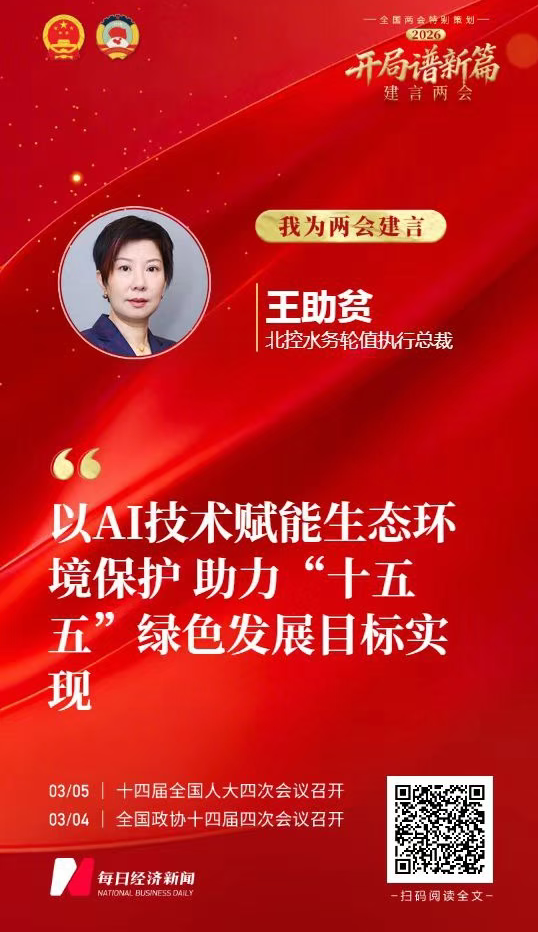 新元肇启,万象更新,全国进入两会时间。北控水务集团轮值执行总裁王助贫受邀参与《每日经济新闻》“2026建言两会 | 开局谱新篇”特别策划,围绕总基调“稳中求进、提质增效”发表前瞻洞见。